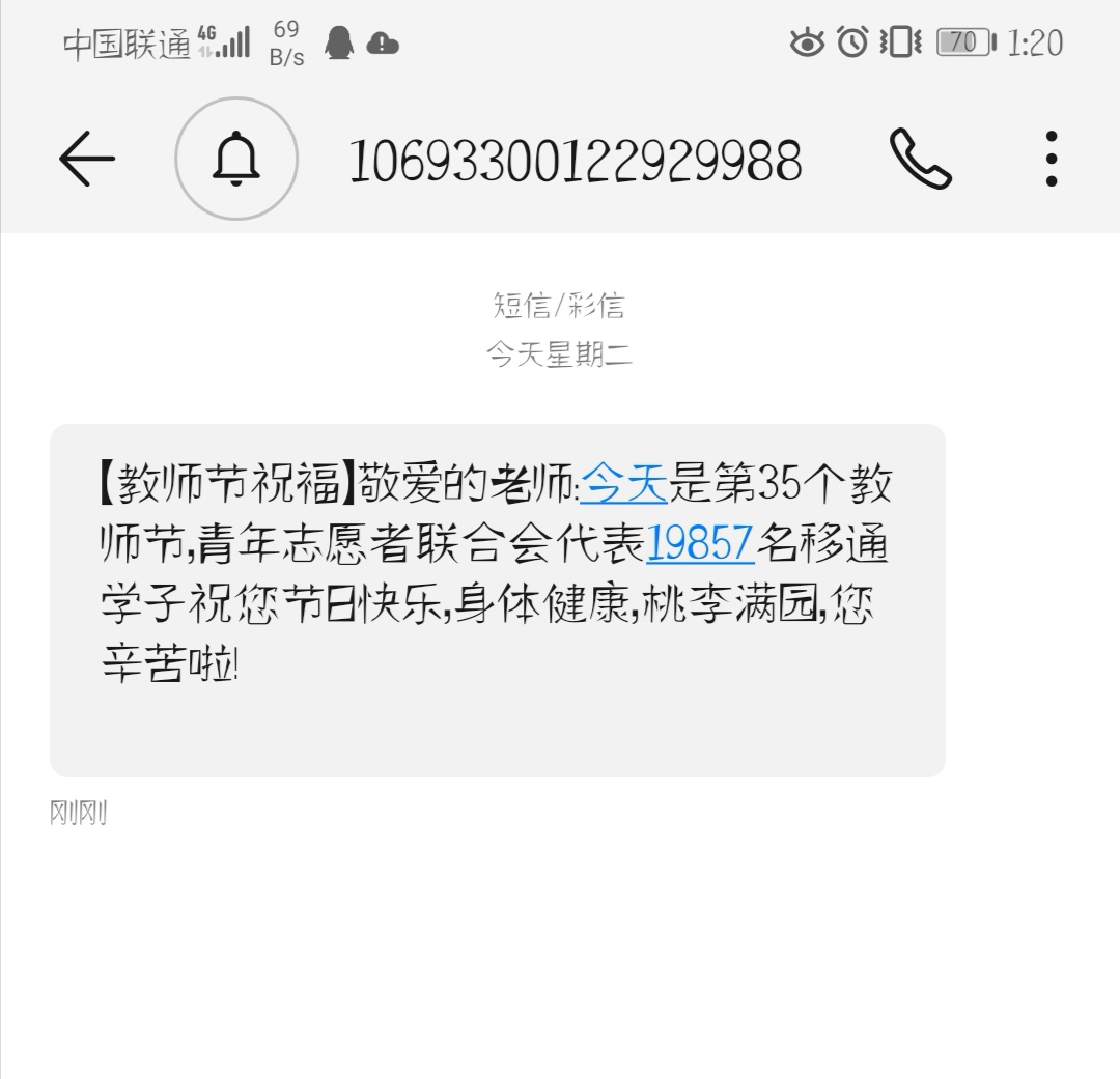 青年志愿者联合会也在9月10日这个重要的日子里用短信向全体老师表达感恩之情,虽然只有只字片语,但带着对老师们的深深祝福,祝他们节日快乐!