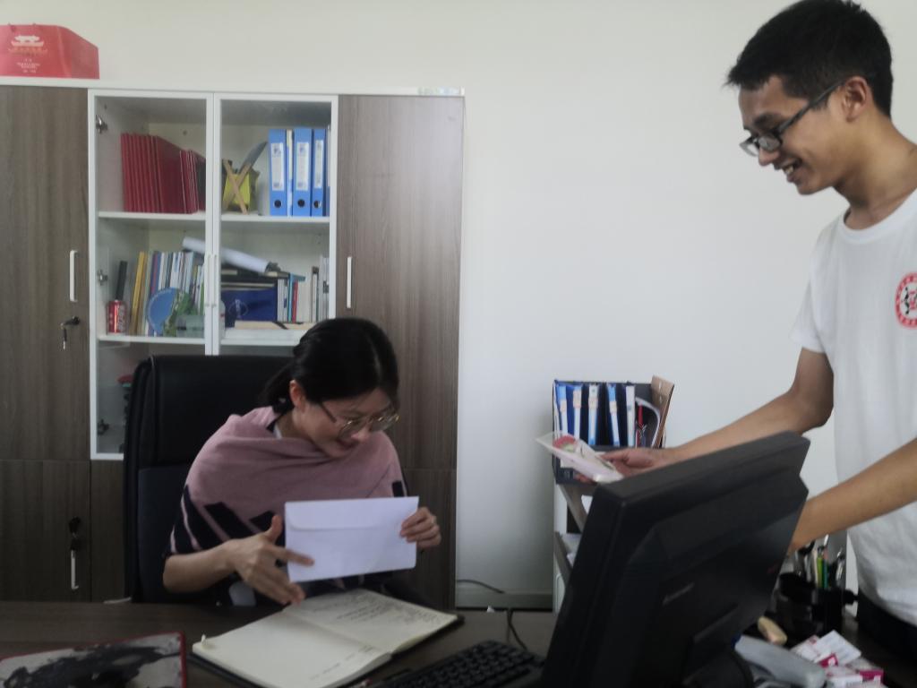 同学们带着贺卡和鲜花,来到竹逸书院和松格书院,为每一位辅导员、任课老师送上礼物及祝福语。轻轻敲门而入,同学们走向贺卡上的老师,送上了祝福语和贺卡,有些惊异而又欣喜的老师们连忙道谢,这何尝不是在教你待人之道呢?将未在办公室老师的贺卡放在办公桌上后,悄悄离开不影响老师工作。