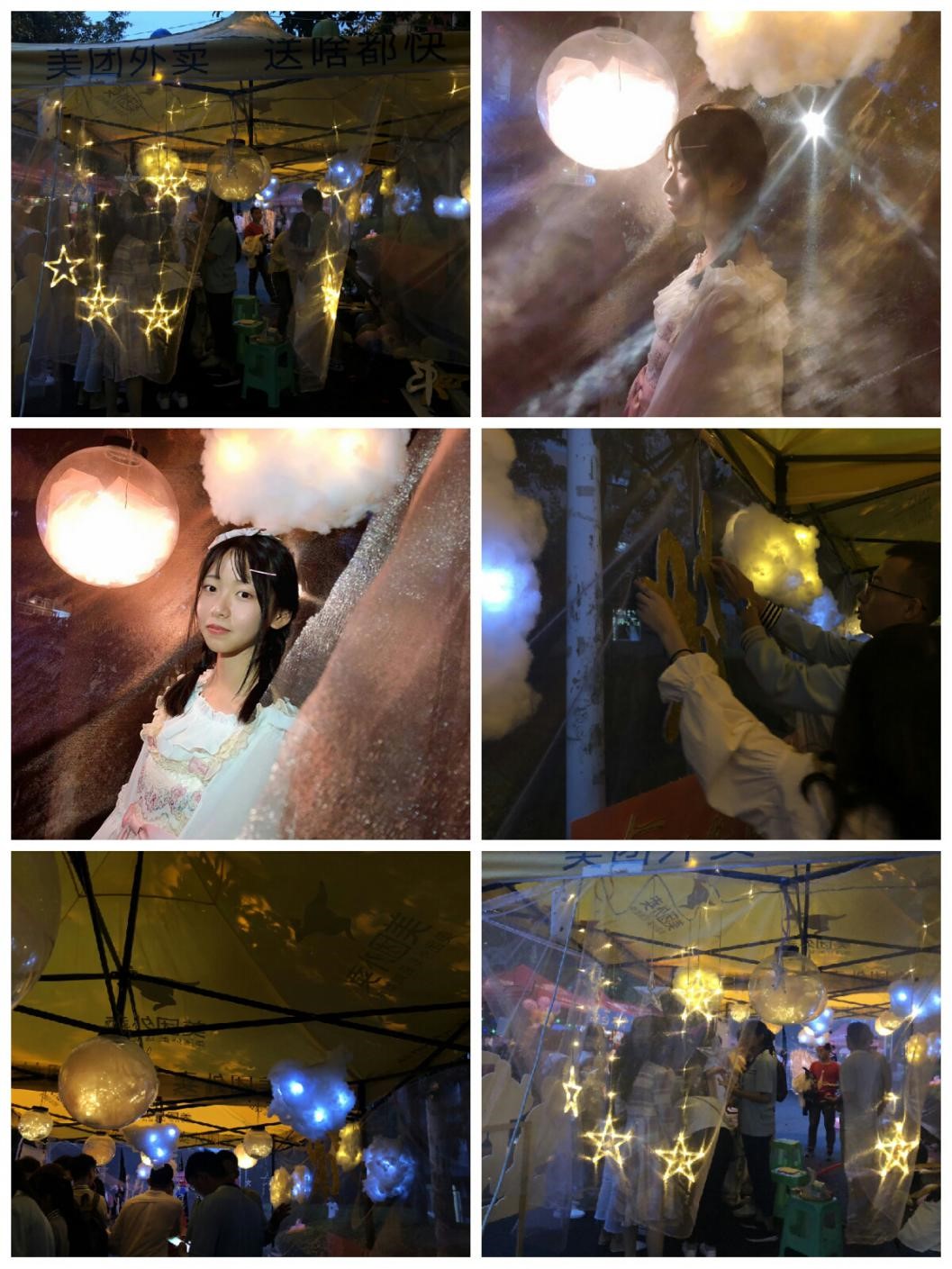 中秋灯谜会甜蜜开启,别都书院摊点亮起灯后,立马就吸引了一大波小姐姐来拍照。已然成为一个“网红拍照景点”。在这些漂亮的云朵灯、星星灯地映照中,同学们的手机屏幕也在不断地亮着,一个个给父母打着中秋的问候祝福电话,脸上虽有羞涩之意,但声音满溢幸福之感。