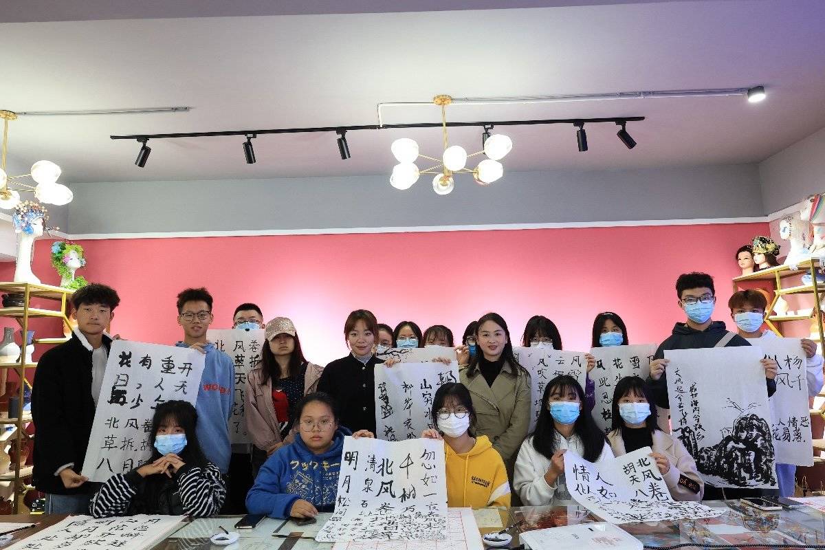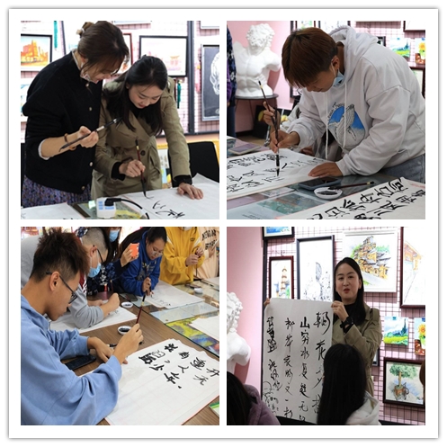 在思政部徐梦笛老师的带领下,同学们一同用毛笔在宣纸上写下自己心目中唐诗宋词的“风花雪月”——“花雪随风不厌看,更多还肯失林峦。愁人正在书窗下,一片飞来一片寒”、“平生诗句领流光,绝爱初冬万瓦霜。枫叶欲残看愈好,梅花未动意先香”。除了书法展示以外,同学们还为自己选择的诗词进行配画,书画搭配让一幅幅作品更为生动。同学们的作品是对古代墨客文人的致敬,这场超越时空的对话体现了对传统诗词文化的传承。