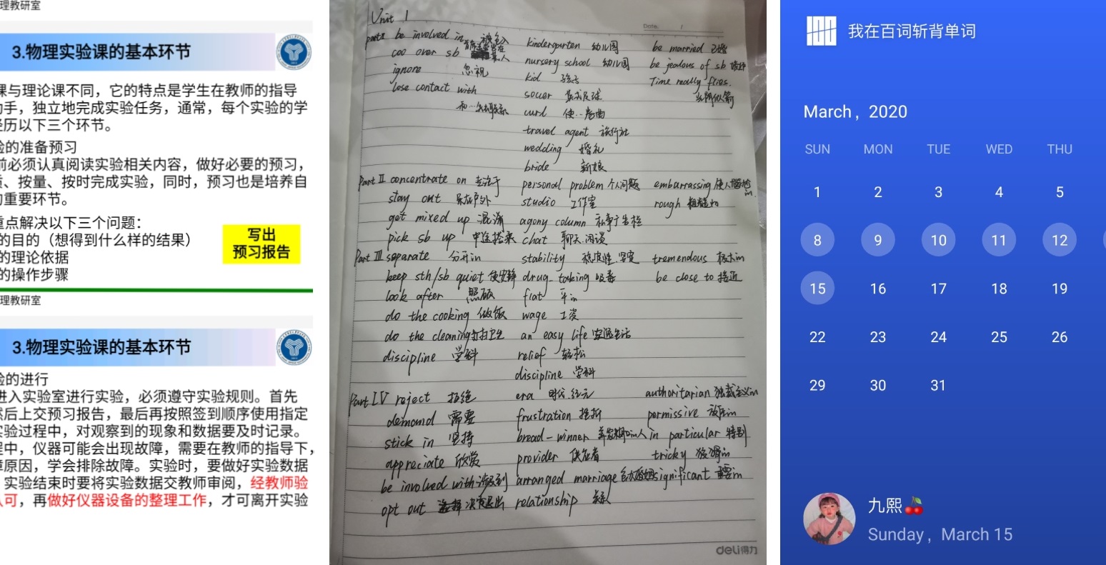 岁月不居,时节如流。距离移通学院原计划开学的日子,我们已经坚持线上开展“停课不停学”工作一个月。居家隔离的日子,多数同学表示:“想念我的移通,想念我的北山书院。”2020年的新冠肺炎疫情,是对社会民众的一场考验,也是对青年大学生规划统筹线上学习的一场测试。疫情期间,北山书院学子按时按量完成学业规划,同时还结伴进行自我运动锻炼、帮助父母分担家务、练就一身美食制作厨艺等全面提升计划,交出了居家隔离期间的合格、满意答卷。