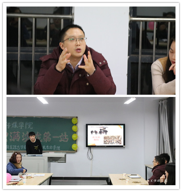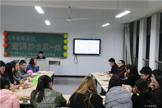 浓淡相宜间,是自由的呼吸! 在大学里,辅导员是一个不可或缺的角色,如何做好对艺术生管理工作的完善是所有高校辅导员心之所愿。为此,2016年11月30日晚上七点,由艺术传媒学院团总支主办的主题为“完满教育理念下辅导员对于艺术生的管理工作”交流会在艺术楼402教室举行。 本次沙龙主讲人为艺术传媒学院2015级辅导员陈婷婷老师,艺术传媒学院团总支书记李克伟老师、2014级辅导员杨超老师、2016级辅导员卢伯年老师以及艺术传媒学院和远景学院近30余名不同专业、年级的学生代表均参与了本次交流会。“大学之道,在明德,在亲民,在止于至善。”源自儒家经典“四书”之一《大学》的开篇之语。道明“大人之学”的基本要义,倡导人的一生在于不断向新向好,以完满美善目标为终极追求,本次交流会着重探讨完满教育理念下高校辅导员对艺术生的管理,以自由讨论的座谈方式让辅导员更近、更真实的了解到学生对辅导员工作以及完满教育工作的心声。