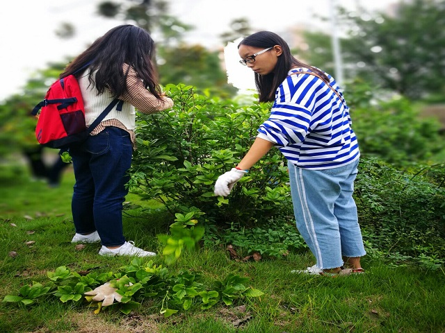 明确的分工,能使工作更有成效,插秧活动现场,女生和社长共同前往读者公园裁剪栀子花枝,男生则留下来松土除草,为扦插栀子花做着最后的准备。看,花卉协会的社员们一个个神采奕奕,拿着剪刀,在栀子花枝前施展技艺,因为大家心里都期许着用自己的双手,造就一片枝繁叶茂,万花丛生的丽景。瞧着大家忙得不亦乐乎,校园里的园丁大叔也前来为传授经验,并亲自示范操作流程。“实践才是硬道理”,社员们听后便开始试着用正确的方法去裁剪栀子花枝,效果不错,今天我们不仅锻炼了实践能力,更体验到生命的伟大!