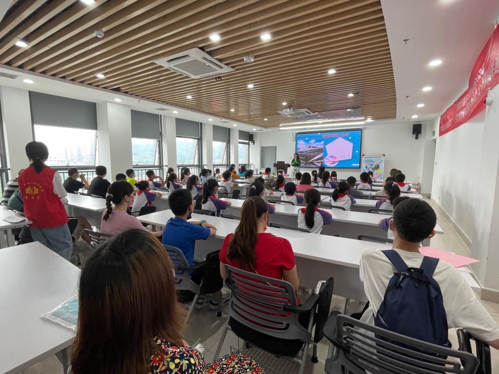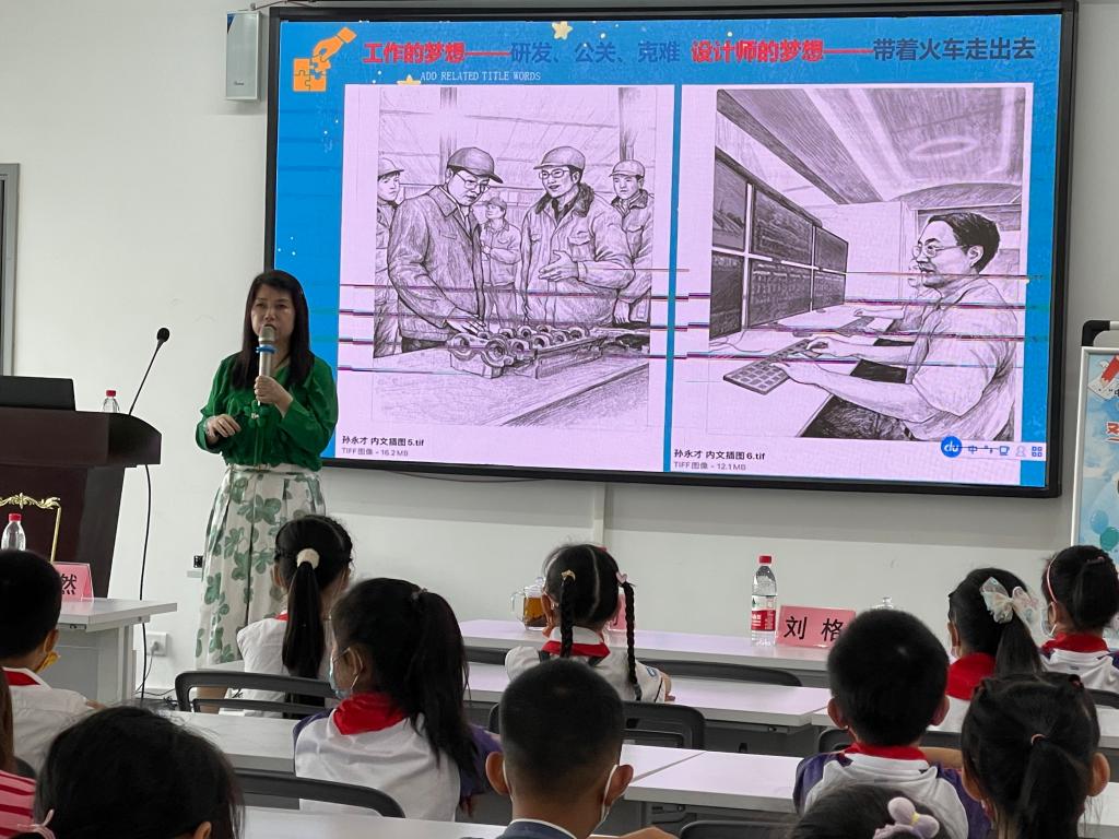 上午10点左右,由重庆社科联、民革重庆合川区工委、合川区社科联、合川区图书馆、重庆移通学院创意写作学院、重庆移通学院廊桥书院魁星工坊社科基地联合组织举办的2022重庆大型社科普及主题活动“中华先锋人物故事汇”·三江合川读书报告会即将拉开序幕,来自合川区久长街小学、新华小学、高阳小学的同学们,在八楼培训室翘首期盼,等待着著名儿童文学作家毕然教授为大家分享《孙永才:让中国高铁跑出“世界速度”》。