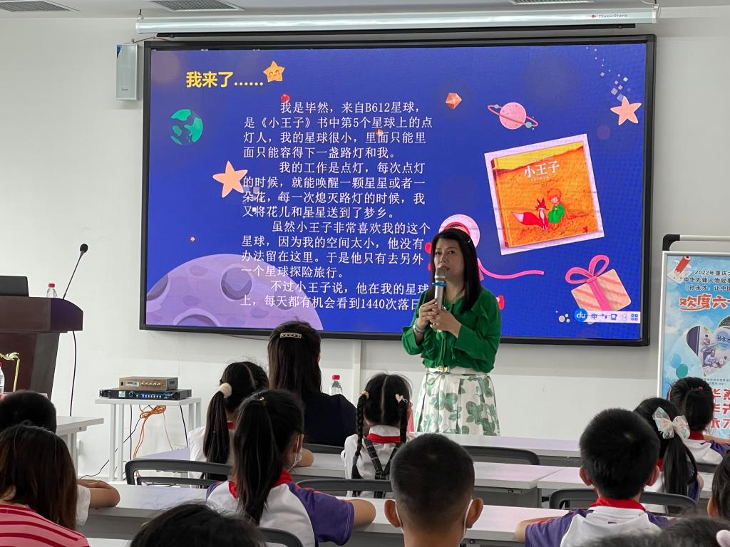 当主持人介绍毕然老师的时候,大家惊讶作家旺盛的创作力,身穿绿色衣裙、头发黑亮的毕然老师居然已经写了53部作品,还获得了很多奖项。而毕然老师则笑着说,“我愿意自己是童话《小王子》里B612-5星球的点灯人,每天的工作是每天早上点亮路灯,唤醒一颗星星或花朵。晚上熄灯,送星星或花朵进入梦乡。连童话中的小王子都喜欢点灯人的星球,并夸奖着说:点灯人是一份美丽的职业。”这种别具一格的自我介绍,瞬间拉近了与小读者间的距离。毕然老师说自己多年来一直坚持文学启蒙的公益讲座和读书活动,以培养扶持文学新苗作为“点灯人”——教师的责任,大家不由自主地为她鼓起掌。
