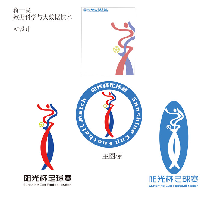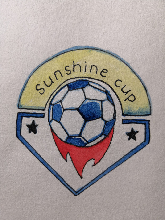 获得一等奖的是淬炼商学院陈曦同学的作品《火力全开》,该logo以活力为主题,足球为基础,整体上独特、简洁,蓝色的足球代表发展,进取,积极向上,下方的红色火焰代表活力,热情,团结的力量,足球上方红色的半圆以黄色为主,黄色代表了太阳的光芒,也代表了希望和活力,这也与“阳光杯”意义相辅。