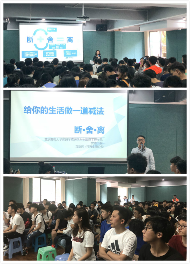 为培养同学们在生活中的判断力和思辨能力,提升审美趣味,传授收纳与整理的技巧,帮助同学们打造明亮、整洁的生活环境,从一道减法打开生活的大空间,从一道减法领悟生活的大智慧。爱莲书院学生自治委员会联合通信与物联网工程学院与回收壳于4月19日12时在爱莲书院1号楼开展断舍离主题活动。