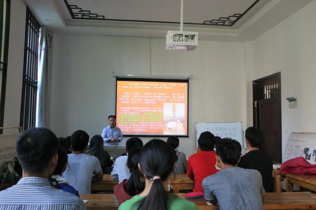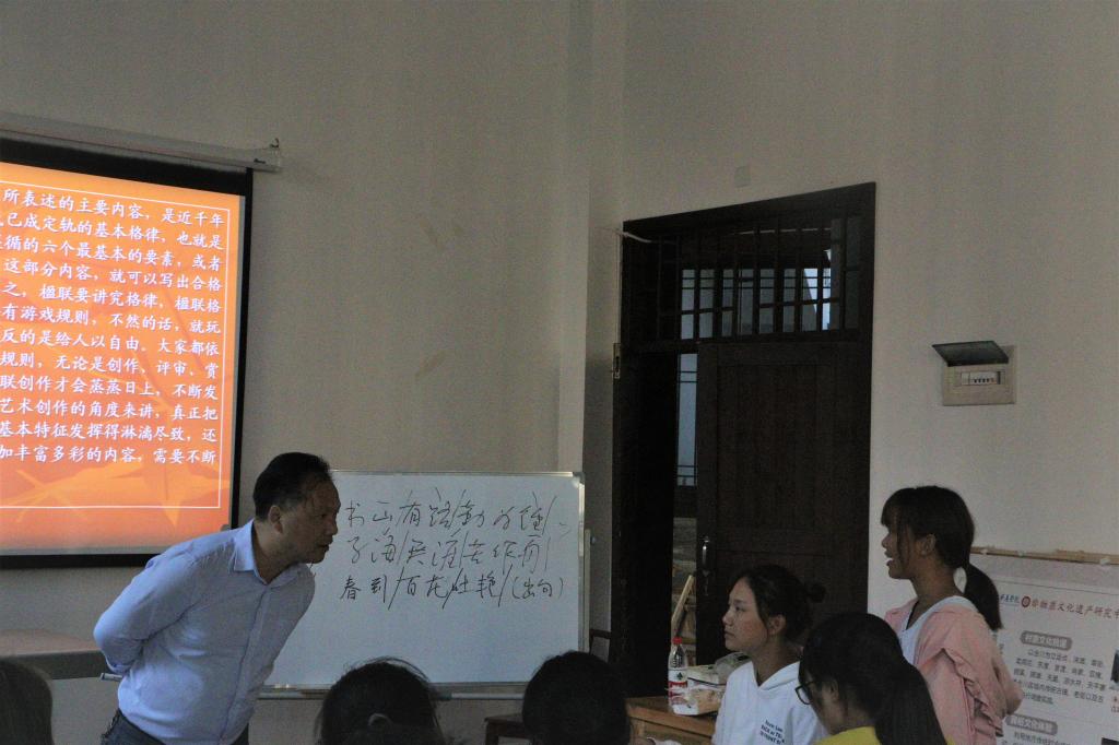 9月25日,由非物质文化遗产研究中心组织开展的“非遗进校园”实践教育讲座——楹联文化在非物质文化遗产传习基地(北山斋E101)顺利开讲,重庆市楹联学会副会长、全国优秀楹联教师兰梦宁以《联律通则》为题,带领非物质文化研究中心的彭伟老师与学生研究员一起走进楹联文化,领略了“诗中之诗”的艺术生命力与艺术表现力。