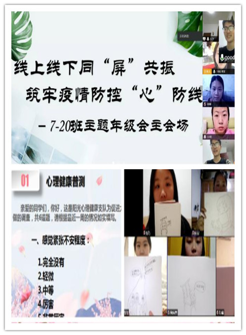 抗击疫情的战役还在进行,宅家就是参加抗击疫情的战斗。期间,停课不停学,书房变教室,客厅变操场,学生容易不同程度地产生焦虑、恐慌、意志力减退等种种心理问题。为引导师生科学理性应对疫情,规划宅家学习和生活,构筑起稳固的心理防线。我院2018级财务管理专业7-20班辅导员熊斌老师邀请心理协会会长彭正冲、阳光心理健康支队成员,举办了以“线上线下同‘屏’共振,筑牢疫情‘心’防线”为主题的主题年级会,加强了我院同学们的心理健康教育和情绪疏导,减轻了同学们因疫情所致的心理困顿,缓解了同学们的情绪困扰。