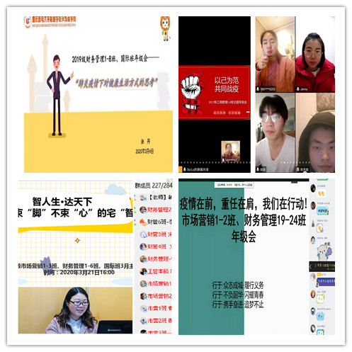 新冠肺炎疫情出现以来,淬炼商学院全体辅导员联动书院等各部门老师,共同携手为同学们加油打气,积极开展网络教育,提高学生思想意识。2017级工商管理专业王玉勤老师携手廊桥书院赖昌容老师,与学生在线连麦,引导同学们配合各级各类防控要求,掌握防疫健康知识,动员全体同学争做完满践行者,将“小我”融入“大我”,以己为范,共同战疫,坚定战“疫”信心。2017级市场营销1–2班、财务管理19–24班辅导员叶洵老师携手别都书院杨成老师,在QQ直播平台开展了以“疫情在前,重任在肩,我们在行动”为主题的年级会,旨在激发大学生群体勇于践行青年使命,增强安全防范意识,坚定信心战胜疫情。2019级财务管理1-8班、本硕连读班辅导员张丹老师携手别都书院陈南西老师举行了以“肺炎疫情下对健康生活方式的思考”为主题的线上年级会,提高了同学们对于本次疫情的重视程度与防范技巧,督促同学们养成文明健康生活方式,推动课堂教学与线上完满教育活动的开展。2018级市场营销1-3班、财务管理1-6班、国际班辅导员黄新燕老师组织开展了“智人生·达天下——束“脚”不束“心”的宅“智慧”线上主题年级会,鼓励同学们把疫情期间的所见、所闻、所想,用动手实践的形式,展示出宅家的智慧,提升同学们战胜疫情的信心。