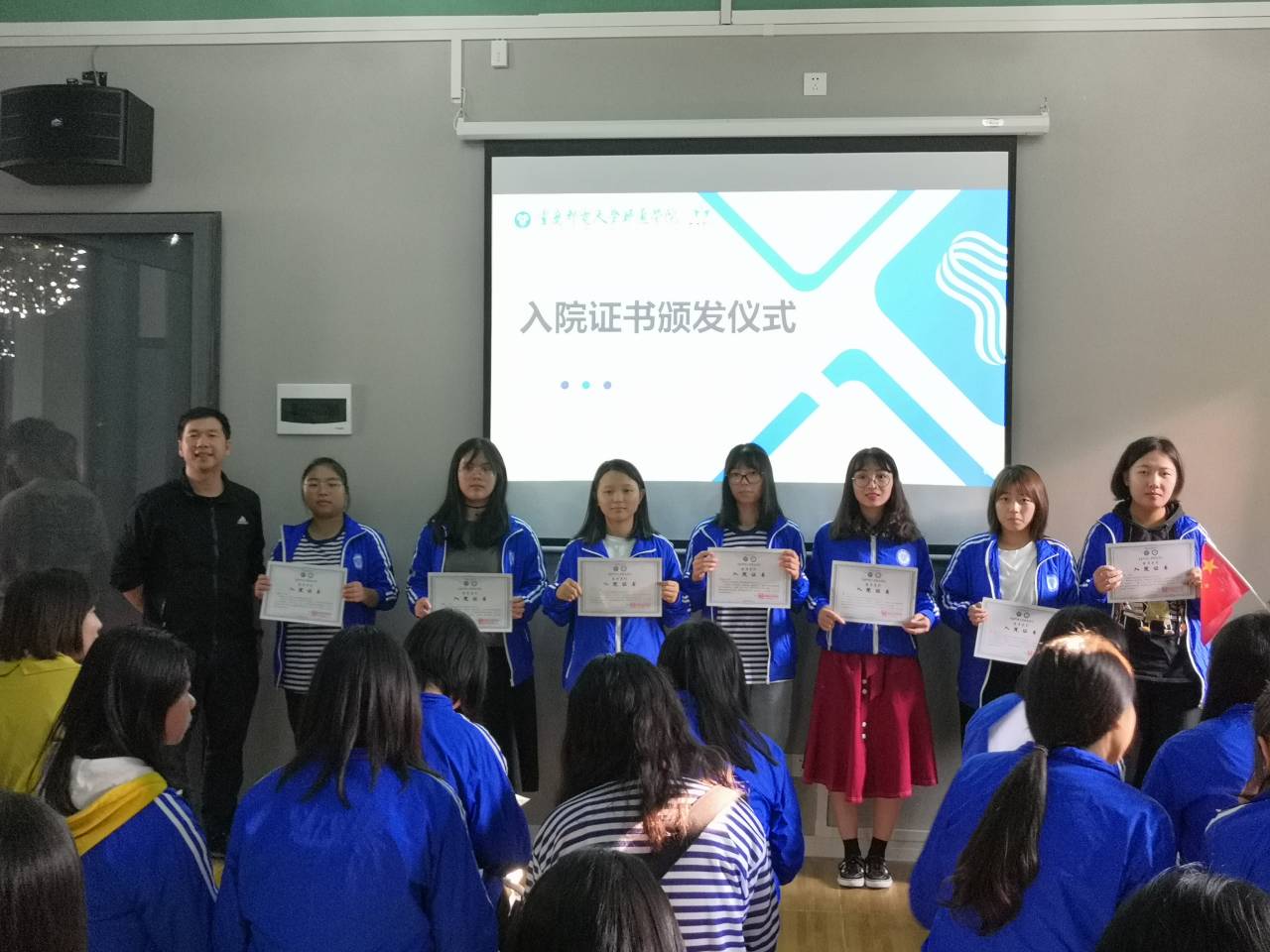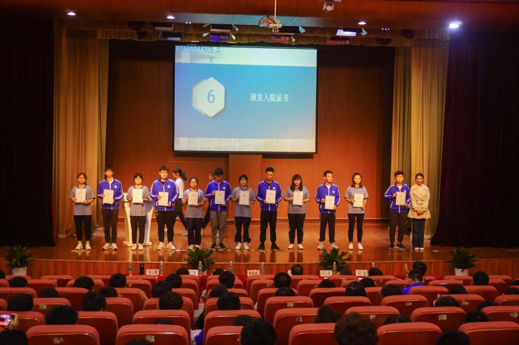 入院仪式通过视频回顾、新生代表发言、优秀学长代表发言、教师代表发言与宣誓仪式几个环节进行。