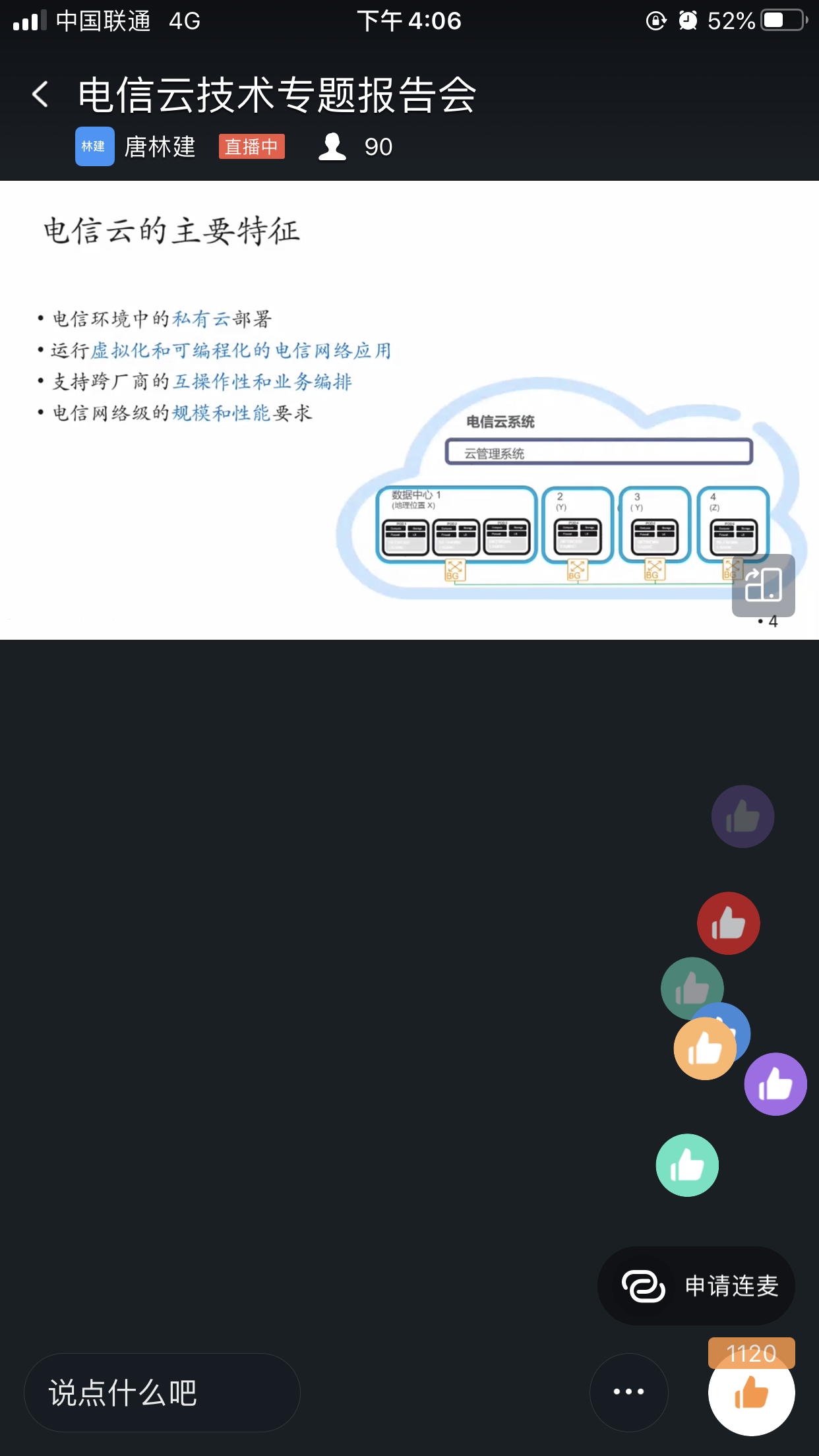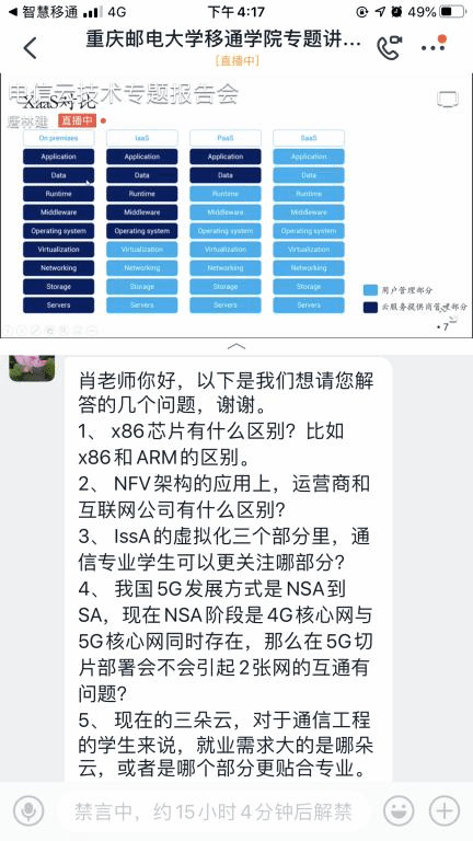 本次线上讲座中,肖娟老师主要围绕电信云主要特征、从4G到5G,电信云的关键技术变化和案例介绍及未来发展趋势三个方面进行了全面细致讲解,内容深入、逻辑层次分明。肖老师详细阐述了云部署类型、云计算服务类型、网络功能虚拟化NFV、虚拟化技术等5G通信中必备的知识。另外,肖老师也提到了5G之旅刚刚启程,未来还有更多的任务需要完成。