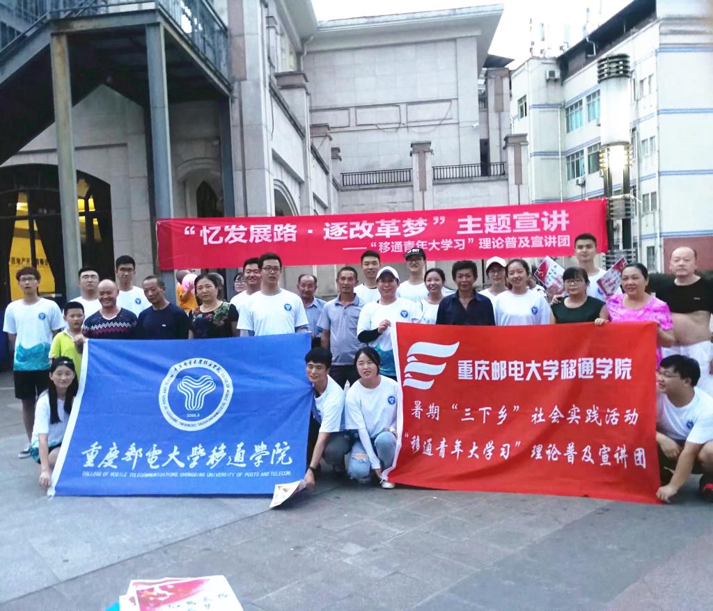 2018年7月21日,重庆邮电大学移通学院“忆梦”宣讲团来到了“忆发展路,逐改革梦”志愿服务活动第三站---重庆市合川区龙湖美岸小区,为当地市民宣讲有关高考恢复后所带来的发展及影响,与市民共同回忆高考恢复40周年。