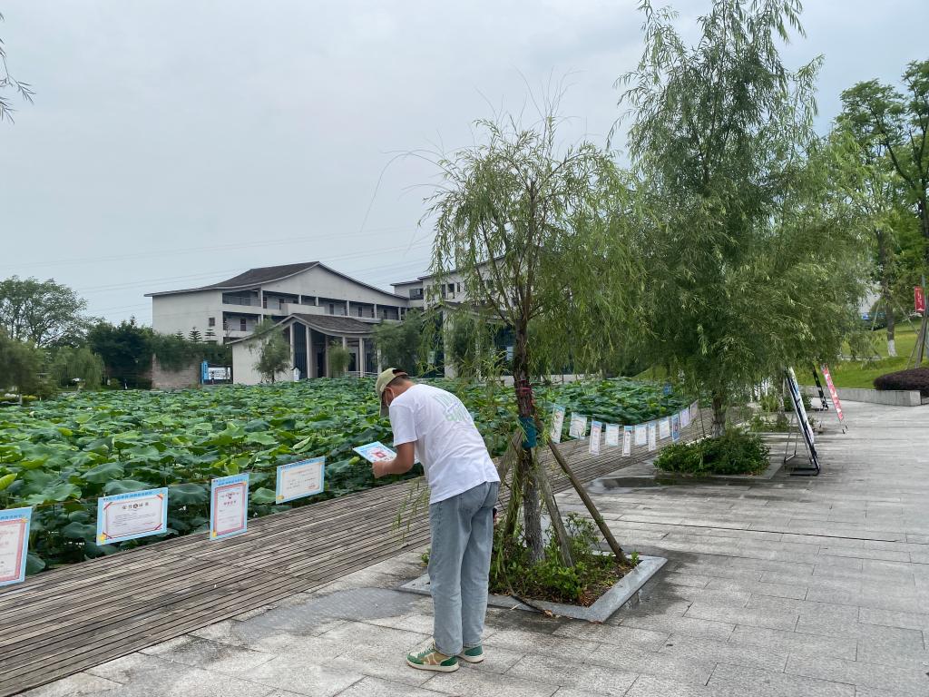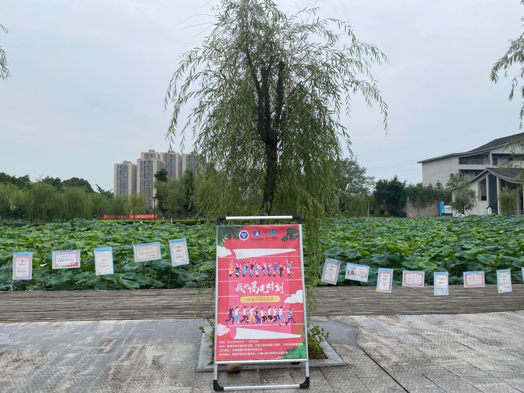 天渠书院池塘旁展示陈列着优秀毕业生们的系列照片和证书,离开校园的你们将以别样的方式激励着迷茫无措的学弟学妹。