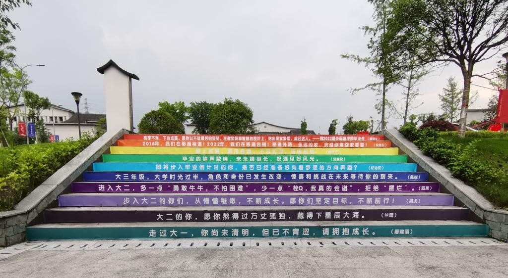天渠书院110阅览室外的彩虹楼梯,承载着老师们的谆谆教诲和殷切期盼,预祝毕业生们平步青云。