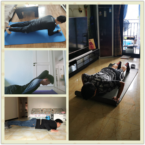 下面这几位同学做的是平板支撑,每天坚持做平板支撑可以锻炼腹肌、减肥瘦身、帮助治疗颈椎病、改善不良体态、增强身体素质,是不是觉得好处多多呢,快来一起做平板支撑吧!