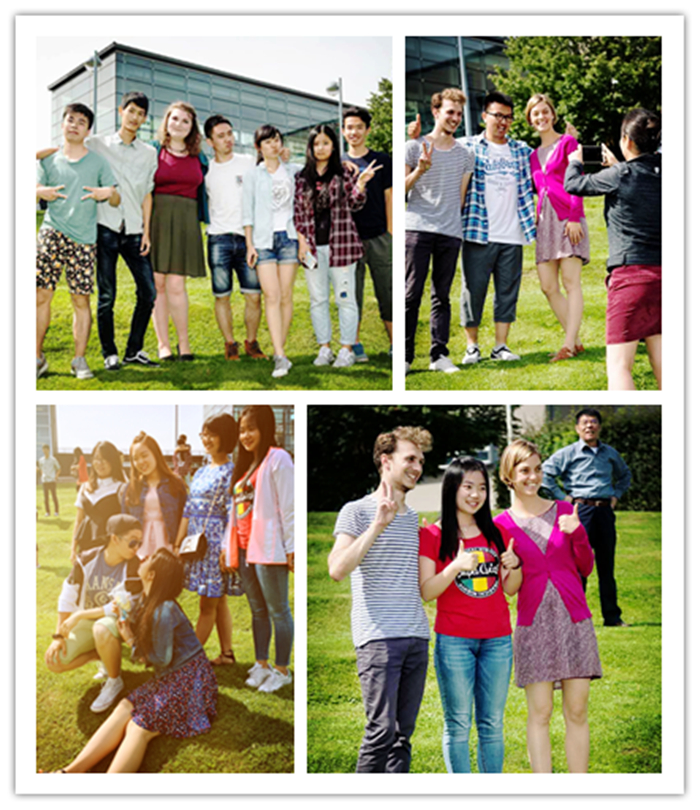 大合影过后,便是各个小伙伴小团队的“相聚”时刻。感觉是再也见不到了的离别,都争着抢着和朋友们做鬼脸,忙着按快门。Daisy毫无疑问的成为大家争先恐后抢夺留念的模特。在比利时的17天里,Daisy就像一个大姐姐,除了要安排我们的生活,还要照顾到我们的饮食习惯,不单单对我们提出的问题都一一解答,对我们平时犯得小错误也都细心指导。想到第二天即将回国,或许再也见不到Daisy,大家都纷纷与她牵手留念,诉说着感谢与不舍。威廉和罗拉伴随着我们这些天在课堂上的学习也深受同学们的喜爱,他们灿烂的笑容,总能在新的一天给予我们温暖的正极能量。