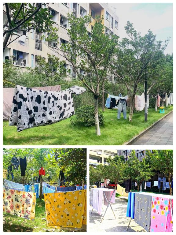 草长莺飞,云卷云舒。除了被子外,一些同学还将自己心爱的玩偶带到现场晾晒,同爱莲一起,享受这舒服的日光浴。看它们各异的表情和姿态,前来参观的同学们都忍不住直呼:“太可爱了!”“居然还可以这样!”“等等,我也去把我的被子拿下来晒晒”。