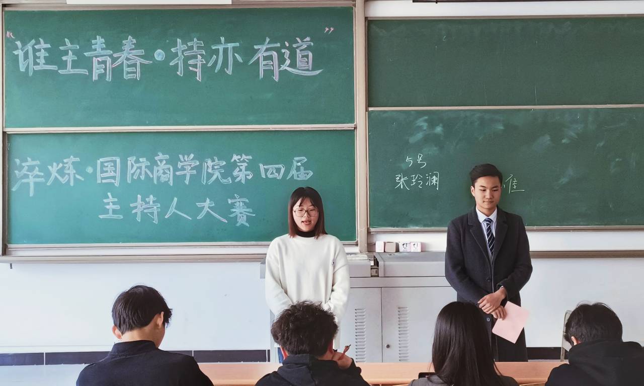 为丰富同学们的课余文化生活,锻炼同学们的交际反应能力和上台胆量,同时为热爱主持的同学提供一个展示自我的舞台,淬炼·国际商学院在3月初筹备了主持人大赛,通过初赛与复赛的层层选拔,十位优秀选手“过五关,斩六将”一路闯到最后一关。淬炼商学院Venus艺术团于3月19日在下里巴人剧场举行“谁主青春·持亦有道”第四届主持人大赛决赛。