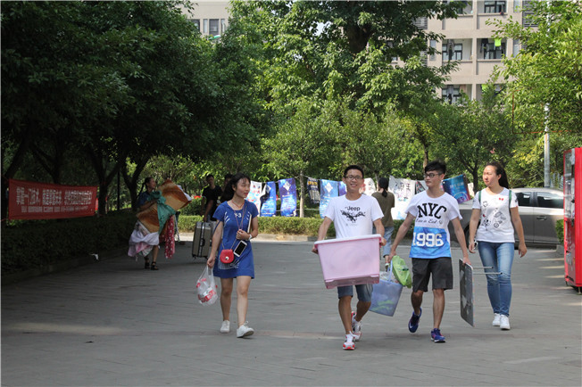 9月10日,移通学院重新迎来了30度的高温天气。下午两点,2015级远景学院的学长学姐们早早地等候在新生宿舍楼下,帮助新生搬迁寝室。
