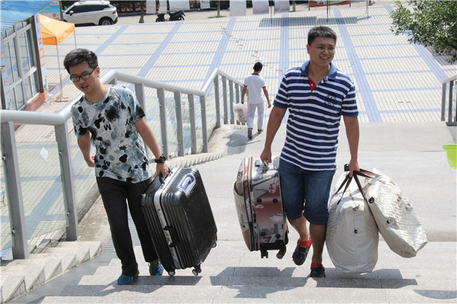 早在9日晚,学弟学妹们早就收到了学长学姐们的问候。约定的时间里,15级学长学姐帮助新生们,陆陆续续把行囊搬上远景学院的校车。校车驮着同学们鼓鼓的行囊,远方是新的疆土和家。