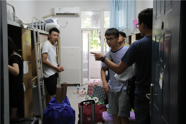 渐渐地,来自四面八方的2016级远景学院新生汇集到了学院C6宿舍楼下。等候在宿舍楼下的辅导员和工作人员们开始有序地引导着新生入住。