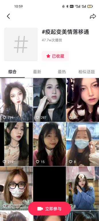 活动要求参与者先拍摄带上口罩的素颜状态,再拍摄摘下口罩的全妆状态,妆容风格不限,形式自由发挥。以个人为单位,将拍摄化妆前后的视频或图片发送到抖音并带话题疫起变美情落移通@移通小会。活动总计2000余名同学参与,视频点赞量超2W,话题播放量超过50W。借助这次线上活动,美妆课堂的热度达到了新高!