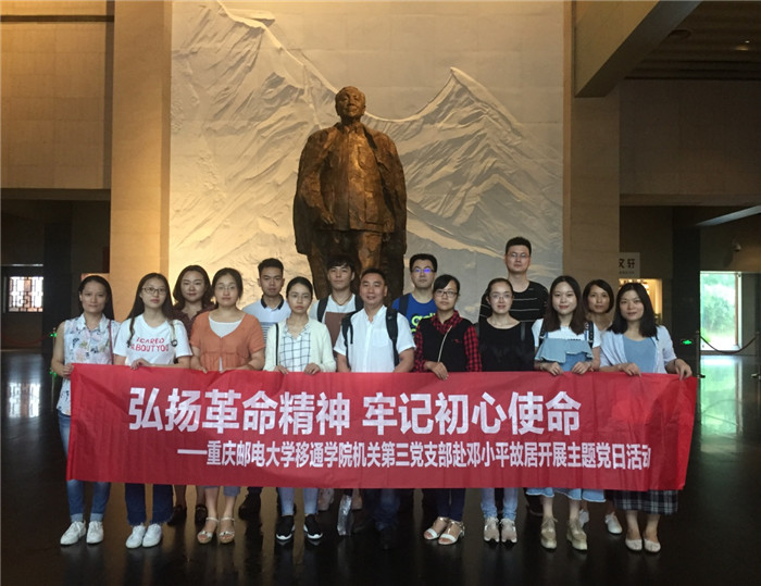为纪念新中国成立70周年、中国共产党建党98周年, 6月25日,机关第三党支部赴广安邓小平故居开展“弘扬革命精神 牢记初心使命”主题党日活动,旨在增强支部党员的政治意识、大局意识、核心意识和看齐意识,增强党支部的凝聚力、战斗力。
