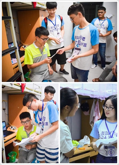 “咚咚咚~”每一间住有计科新生的寝室门都被小e们敲响,他们作为学长学姐和学生干部,已经渐渐转变了自己的身份,开始能够独当一面,“学弟好,我们是计算机科学系团总支学生会的学长学姐们,你们在寝室住的还习惯么,寝室里的东西有什么问题没,你们对这边的生活还有什么疑惑么······”数十间寝室,数十次问候,不变的是满满的诚意和关心。