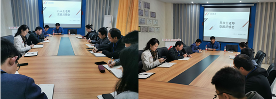 下午2点,吕永生老师与双体系陈仲华主任及全体教师进行了交流反馈会。吕永生老师通过三天与师生的交流,总结了双体每位教师个人授课特点,肯定了老师们的授课水平,并建议每位教师相互听课,取长补短。同时建议老师们多关注能力较强学生及技术学习目前比较吃力的学生,在内部实现分层教学。同时关注学生心理问题,帮助学生疏导情绪,走进学生心里。