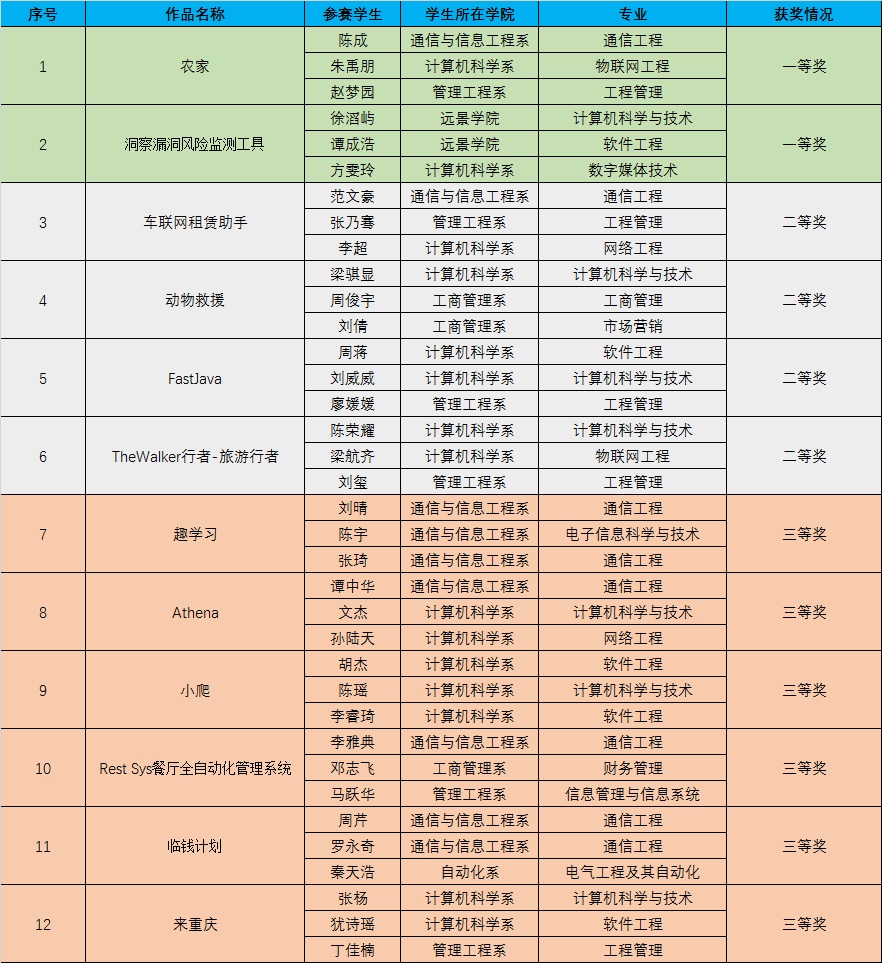 双体系以软件技术实战为主的培养模式,提倡学员将所学技术知识转化为优秀的软件作品,并鼓励他们用自主开发的软件作品参加各技术类比赛,在赛场上与竞争对手互相切磋交流,检验和提升自己的技术实力。2017年,在学校的大力支持与校领导的悉心指导下,双体学员已在技术类比赛中获得市级一等奖4项,二等奖6项,三等奖6项,希望获奖学员在接下来的国赛舞台上,能够再接再厉,再创佳绩。