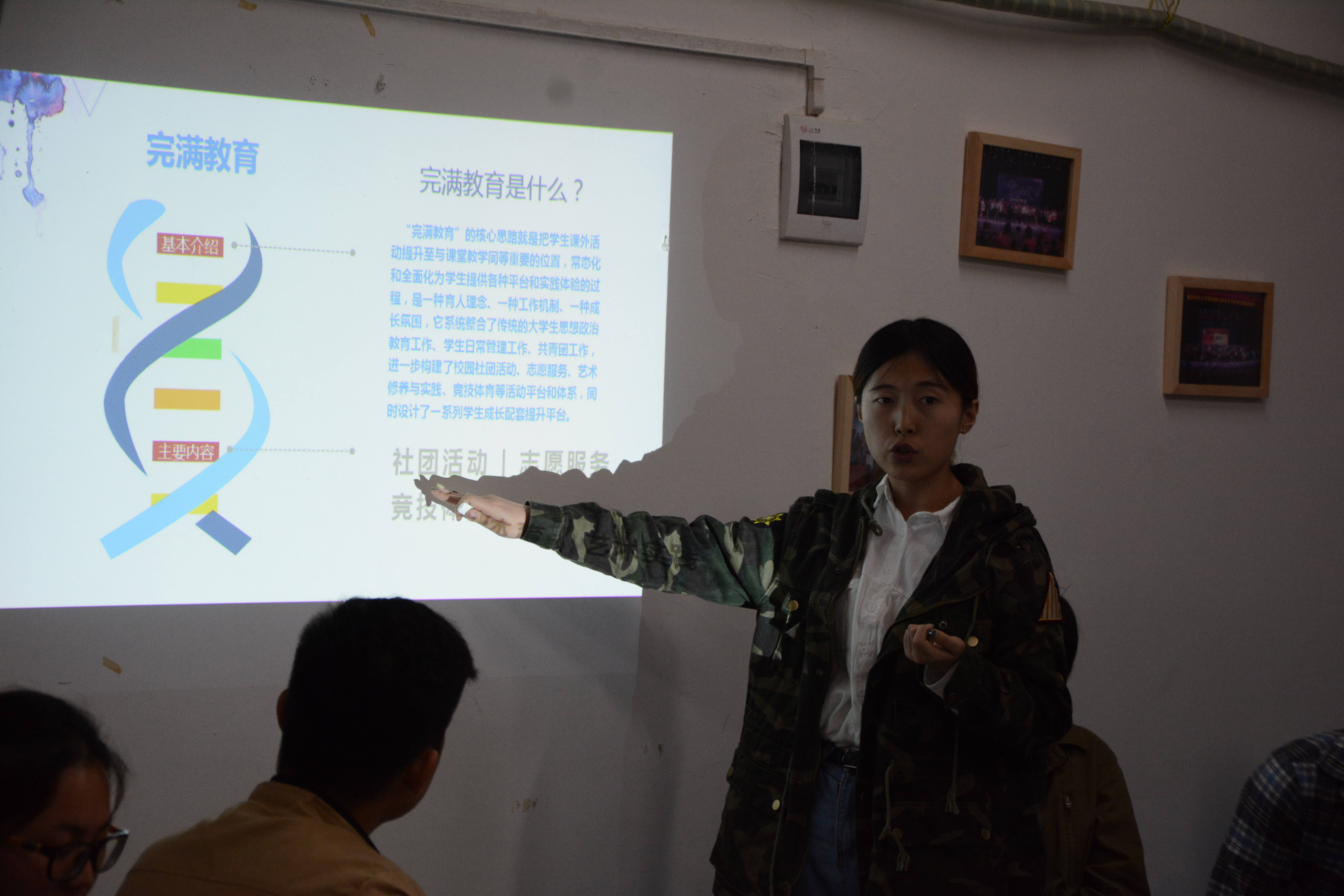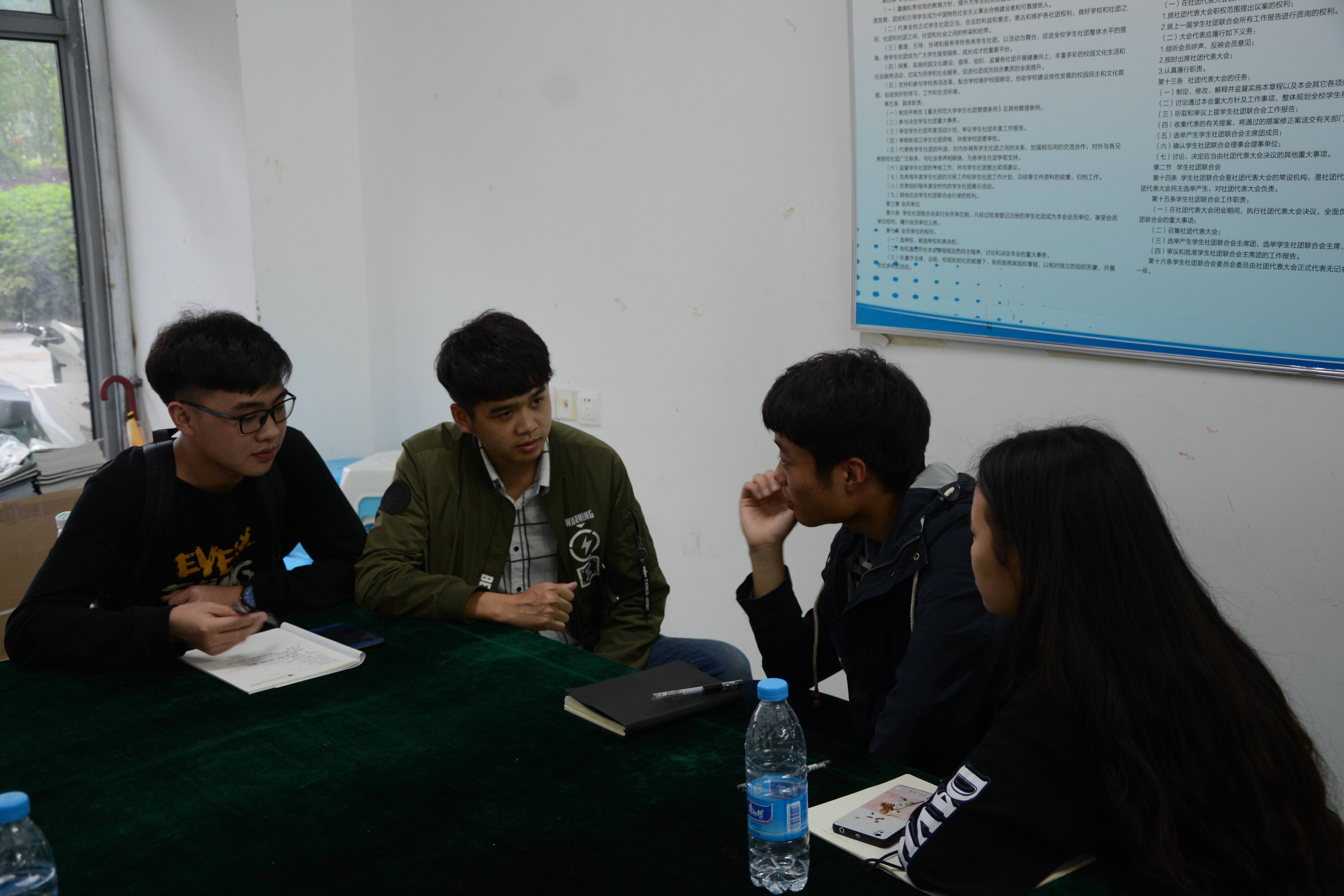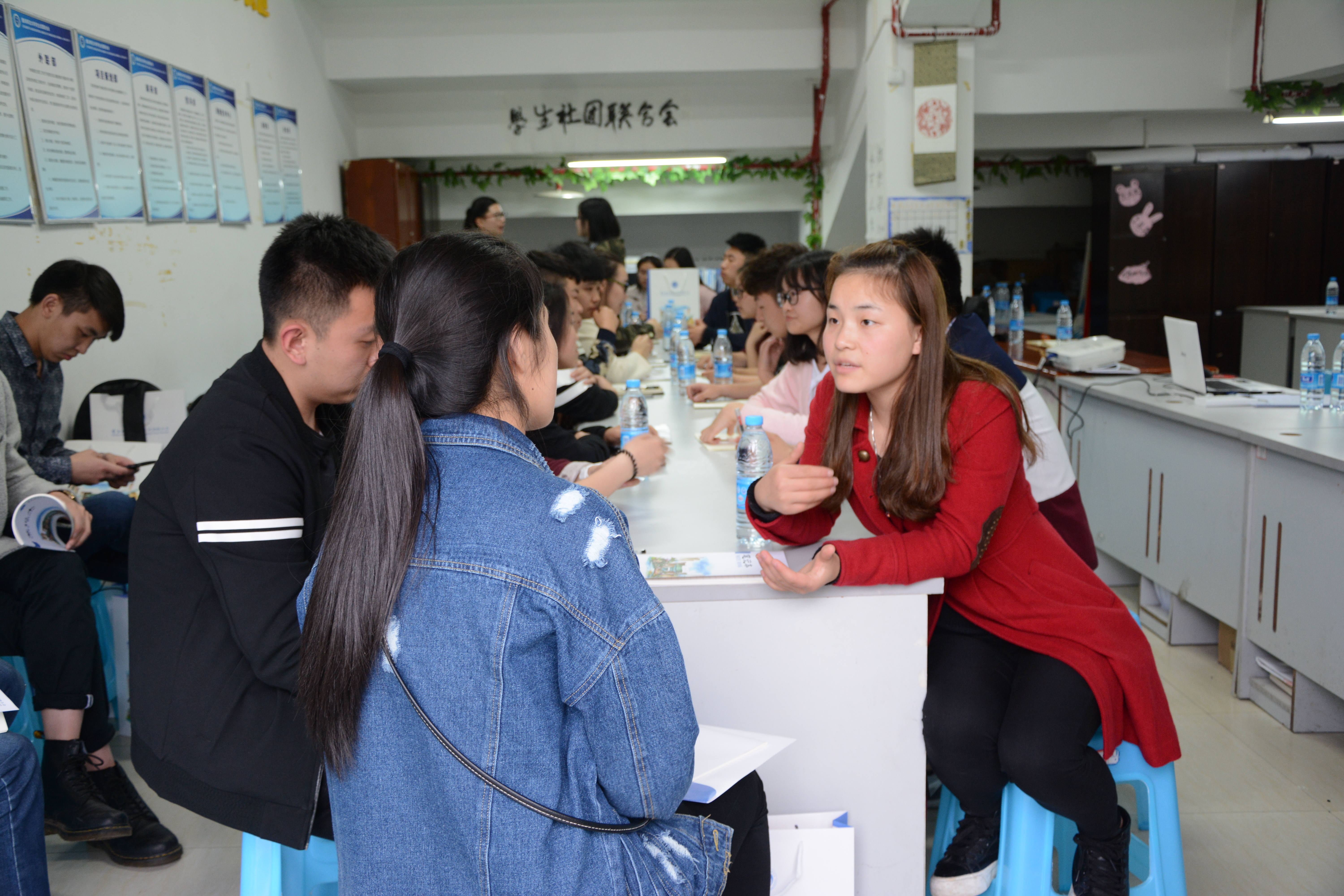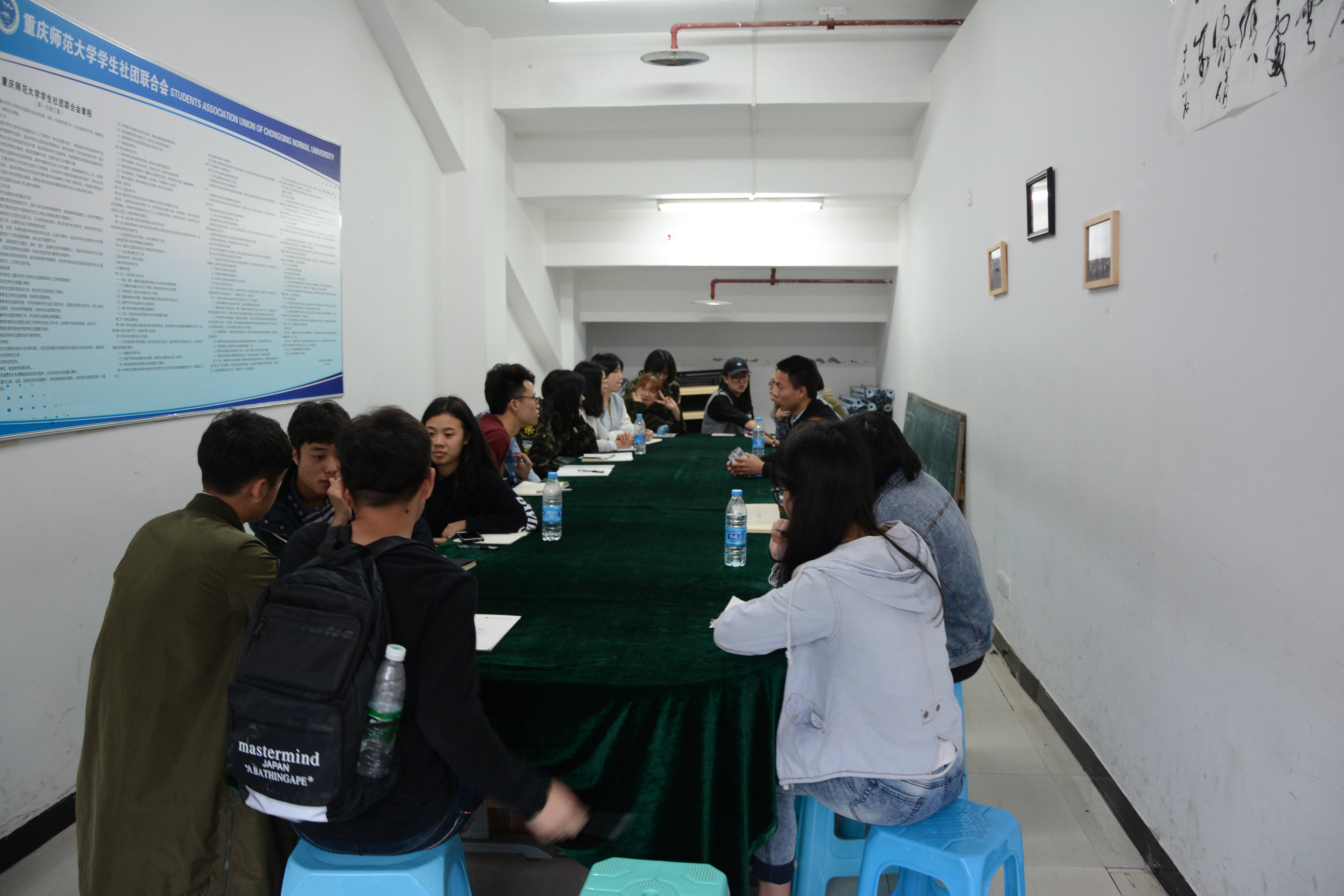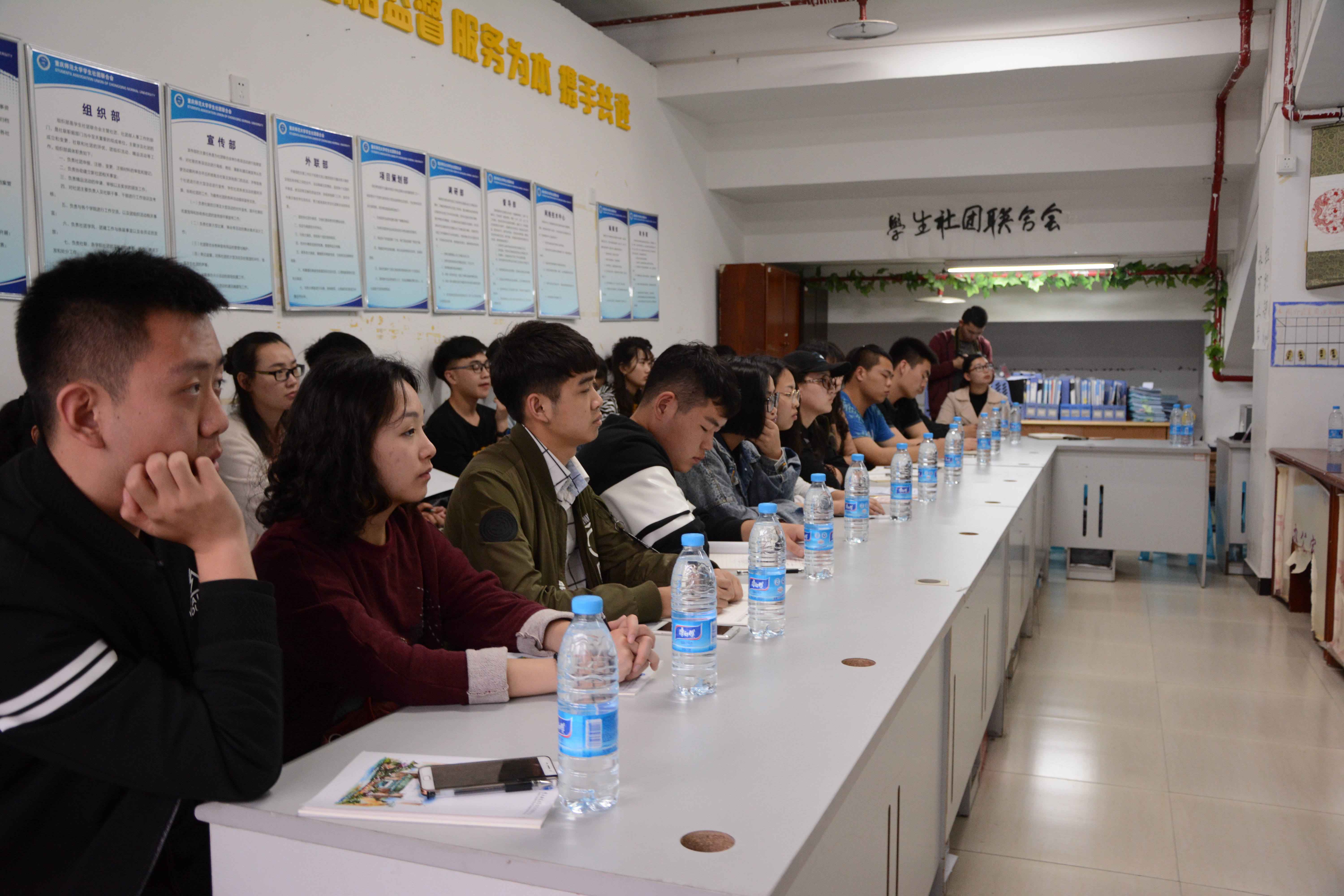 作为东道主的他们首先为我们介绍了其社联和代表社团的发展情况及重点活动。我校则有外联部部长李丹作为代表全进行了初步的介绍。而品牌社团:DIY手工协会、手语社、电影协会也派出社长作为代表介绍了其社团精品活动及发展状况。以期达到互相借鉴,共同进步的交流目的。简单的介绍后便是自由交流,没有了PPT中规中矩的限制,双方就各自的工作开展情况展开了激烈的讨论,之前文化展示时的一些疑问也在座谈中得到解答。负责人们你一句我一句相聊甚欢,几个回合下来,在思维碰撞间也收获满满。