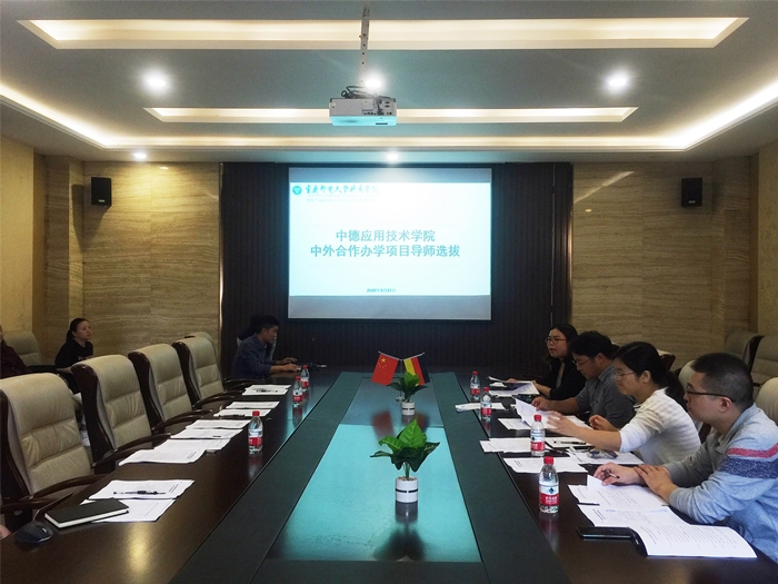 为落实学校“四位一体”办学定位,提升中德应用技术学院教育教学质量和国际化水平,打造学院“家”文化,营造良好的出国留学氛围,提高学生出国学习的能力,根据《重庆邮电大学移通学院中德应用技术学院(南湖书院)中外合作办学项目导师制方案(试行)》指导精神,中德应用技术学院于9月23日16:00在会议室顺利开展中外合作办学项目导师选拔工作。本次选拔工作有幸邀请到学校校长助理、教务处处长刘枚及学院院长尹浩亮,副院长侯宇晶、武强义担任评委,选拔活动由侯宇晶副院长主持。
