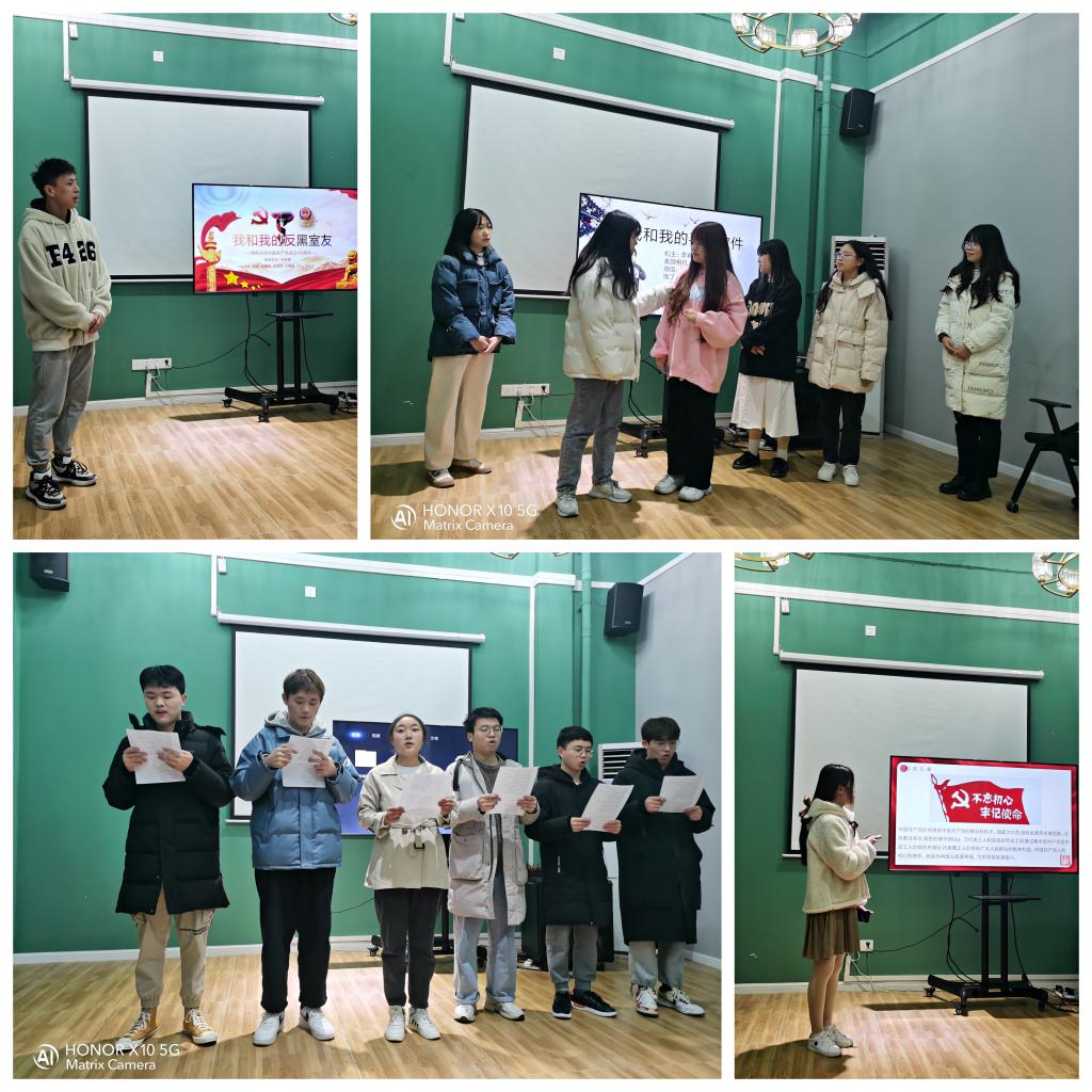 不忘初心,才能使红色江山永不褪色;牢记使命,才能让红色基因血脉永续。本次活动前期初选历时两个多月,由政治理论教研室各教师在任课班级进行,合计大一至大三超过5000人次参与其中,最终31组选手进入到初赛。同学们在准备成果展示的过程中学习党的历史,感悟党的精神,不断认识到自身所承担的时代责任,更加坚定了中国特色社会主义道路自信、理论自信、制度自信、文化自信。在初赛现场,同学们通过自己的所见所闻、所历所获、以自己的独特的方式来表达所感所悟,展现形式丰富多样,作品门类五彩缤纷,不仅有视频制作、手工制作,而且有诗歌朗诵、小品、歌唱等等。