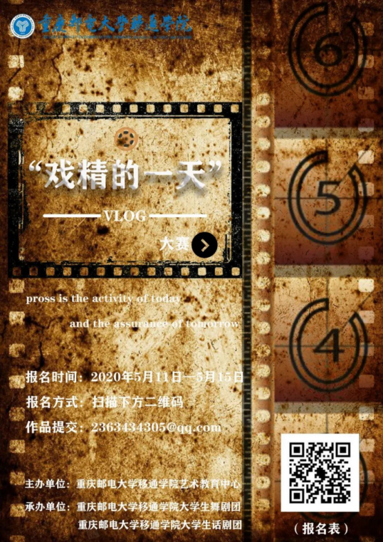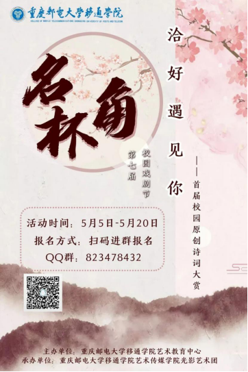 为了丰富线上戏剧节的活动覆盖,丰富大学生的课余生活,活跃生活气氛,展现大学生在疫情期间积极、乐观的抗疫心态,鼓励大学生学会用视频记录生活的能力。记录或创作在生活中与家人或者朋友之间发生的有趣的事情。有兴趣的同学在5月15日前将个人报名表发送至报名邮箱2363434305@qq.com。本次作品征收时间为5月11日—5月15日,并将作品上传到抖音上附带话题#名角杯戏精的一天,并@第七届名角杯校园戏剧节哦,风格不限,主题不限。