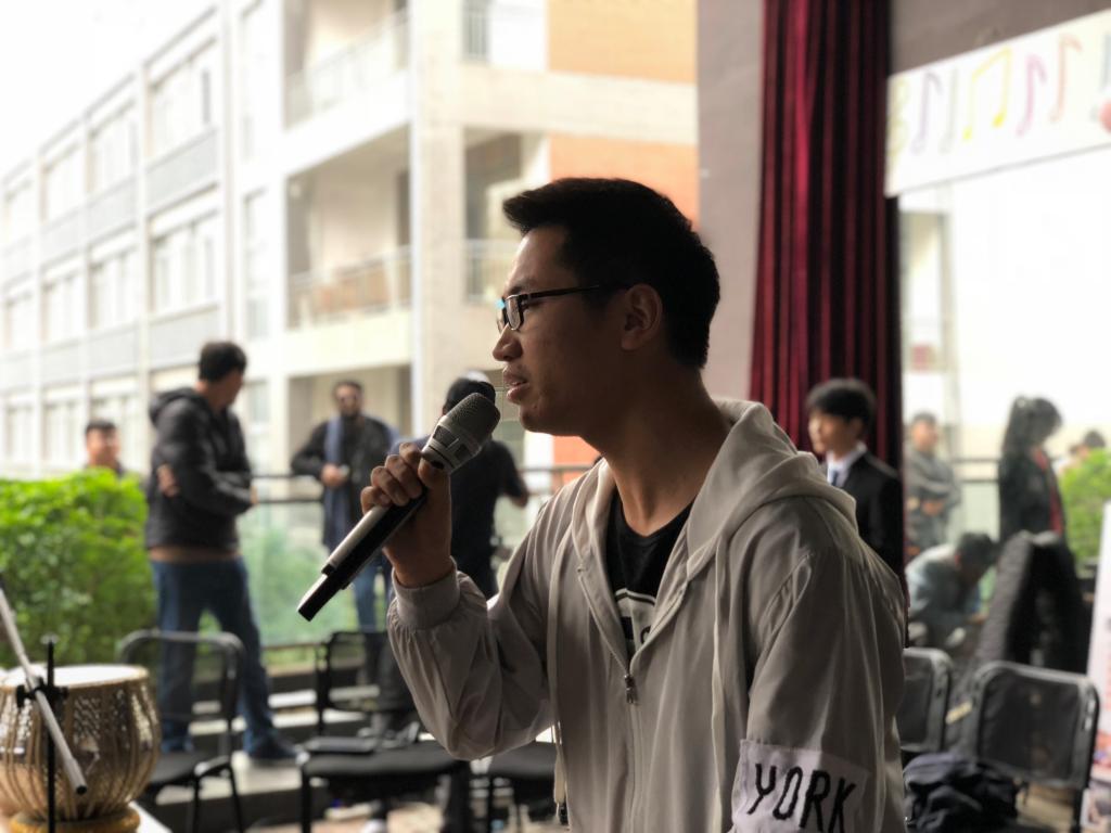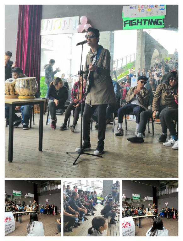 为了让同学们能够熟悉不同音乐的风格,同时让大家更好的了解他们的乐队。印度籍友人特意给大家带来了手鼓表演和印度歌曲的深情演唱,浑厚沉稳的气息,音阶的自如转换,让大家体验到了印度风的听觉震撼。共同用印地语演唱,领略异域风情的美,更是一次不可多得的互动机会。
