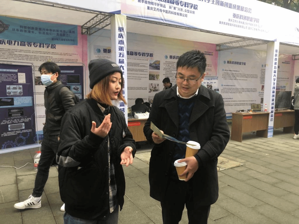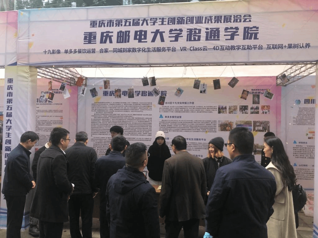 为积极搭建大学生创新创业项目与社会资源对接平台,展示工作成果,推动大学生创新创业工作高质量发展,2020年11月24日,由市教委主办,市大学中专毕业生就业指导服务中心承办的重庆市第五届大学生创新创业成果展洽会在西部(重庆)科学城大创谷成功举办。我校的5支创新创业项目团队在创业学院指导老师车丽芳老师的带领之下参加了此次展洽会并进行交流学习。校长助理、创业学院院长周伟老师,就业创业指导与服务中心主任、创业学院副院长陈仲华老师莅临现场指导。