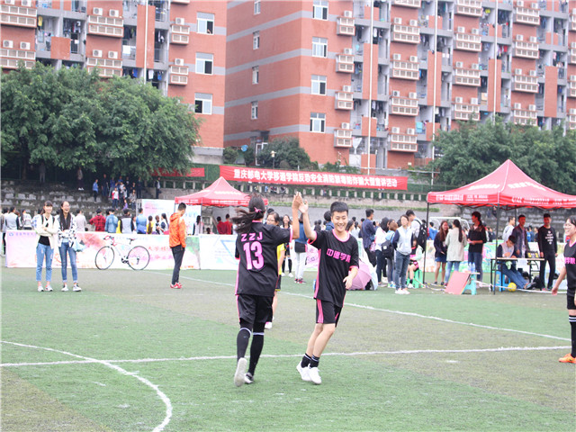 随着裁判一声哨响,通信与信息工程系和管理工程的队员们展开了激烈角逐。比赛伊始,通信与信息工程的队员们展开了猛烈攻势,管理工程的队员则处于被动状态。随后的比赛中,通信与信息工程队一直占据着场上的主动权,屡次突破对方防守将球带到对方球门附近,在对方门前造成压力。比赛进行到16分钟,管理工程队球员一记漂亮开球,再加上精彩有力的接发球,终于把球打到了对方的半场,就当观众们以为被动的场面即将扭转,孰料一分钟后,通信与信息工程队的8号在队员们掩护下乘势追击,把球顺利送进球门,夺得本场的第一个球。通信与信息工程队没有给管理工程队任何喘息的机会,13号球员趁势又夺下一球。上半场比赛结束,通信与信息工程队以4:0领先。