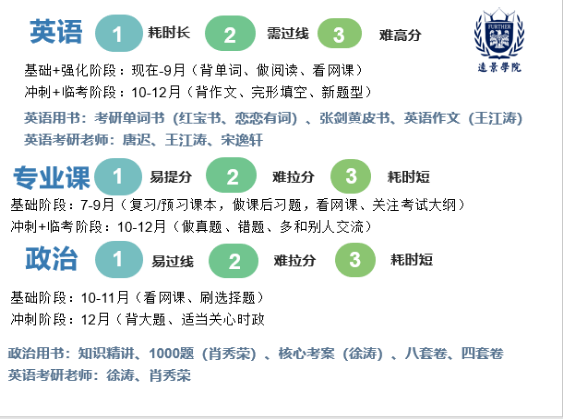 2.考研需早做准备,大一大二是开始准备的最佳时期,以打好基础。