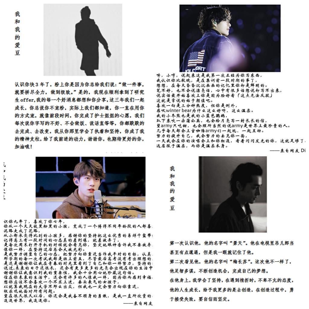 现今,人们在物质生活充裕的时代,更加注重精神上的追求,每一个年龄阶段都有着自己的追求,在青少年的日常生活中,“明星”、“爱豆”、“偶像”等无处不在,是他们的精神食粮,是他们源源不断的动力,在收到的图文中,看到他们因为“偶像”的一句话、一个动作,开始改变自己,使自己在阳光、积极的道路上继续前进,为自己的未来而努力拼搏,亦或尽全力帮助、服务他人时的那股劲,或许,这便是他们的“精神食粮”。
