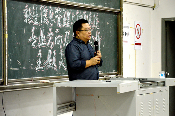 信息管理与信息系统专业交流会于19点在3102教室准时开始。大一新生辅导员吴平对参会的信管教师进行了介绍,信管教研室主任苑隆寅老师针对信管专业学习方向进行了剖析。苑老师通过对信息管理与信息系统专业发展历程及人才培养目标的介绍,提出信管专业学生目前的一个最大问题就是“无一技之长”,他认为原因有三个,即对专业认识不足;专业方向认识不清;对社会需求认识不足,无法满足社会的需求。面对这样的现状,苑老师就“大学学习期间需要每门课都要尽自己最大的努力去学好并考到最好吗?”及“大学学习期间每门课能及格就可以了吗?”两个问题与学生进行了交流互动。同时,针对“大学生到底需要学什么”,“怎么学才是关键”等问题,苑老师又通过对信管专业方向详细的划分及往届学生目前的从业方向等方面,告诉并鼓励新生从大一起就要寻找自己的专业方向,通过学习明确自己的专业方向,并通过软件考试检验自己的学习成效,树立充分自信,为未来的就业做好准备。紧接着,信管专业的罗元老师又结合自身曾经长达五年的企业经历,为新生解释了未来就业方向选择的问题,他首先介绍了信管专业未来的九个就业方向,尤其对ERP相关职位和物流与供应链管理方向做了重点介绍。随后他还分析了如何根据自身性格和外界环境因素去选择从业方向,并用了“一万小时”定律督促鼓励新生要努力学习,把握好自己的人生。罗老师语言轻松诙谐,却饱含哲理,现场的新生听得聚精会神,受益匪浅。