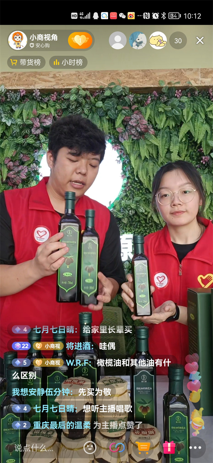 线上直播,一个个忙碌的身影在橄榄油展架间穿梭,运镜、构图、打灯,一切都在有条不紊地进行……志愿者通过淬炼·国际商学院官方抖音小商视角直播间直播带货,志愿者通过直播普及橄榄种植生产知识、传播公益精神及分享此次“三下乡”暑期社会实践活动。本次直播依托油橄榄资源优势,搭建当地产品产销信息平台,推动了隆兴镇电商助农供应链体系建设,为实现城乡生产和消费购买有效衔接奠定了基础,促进了隆兴镇乡村产业振兴。同时通过本次实践活动,架起商科理论和新媒体实践的桥梁,用志愿温度、青年力量来书写青春篇章。