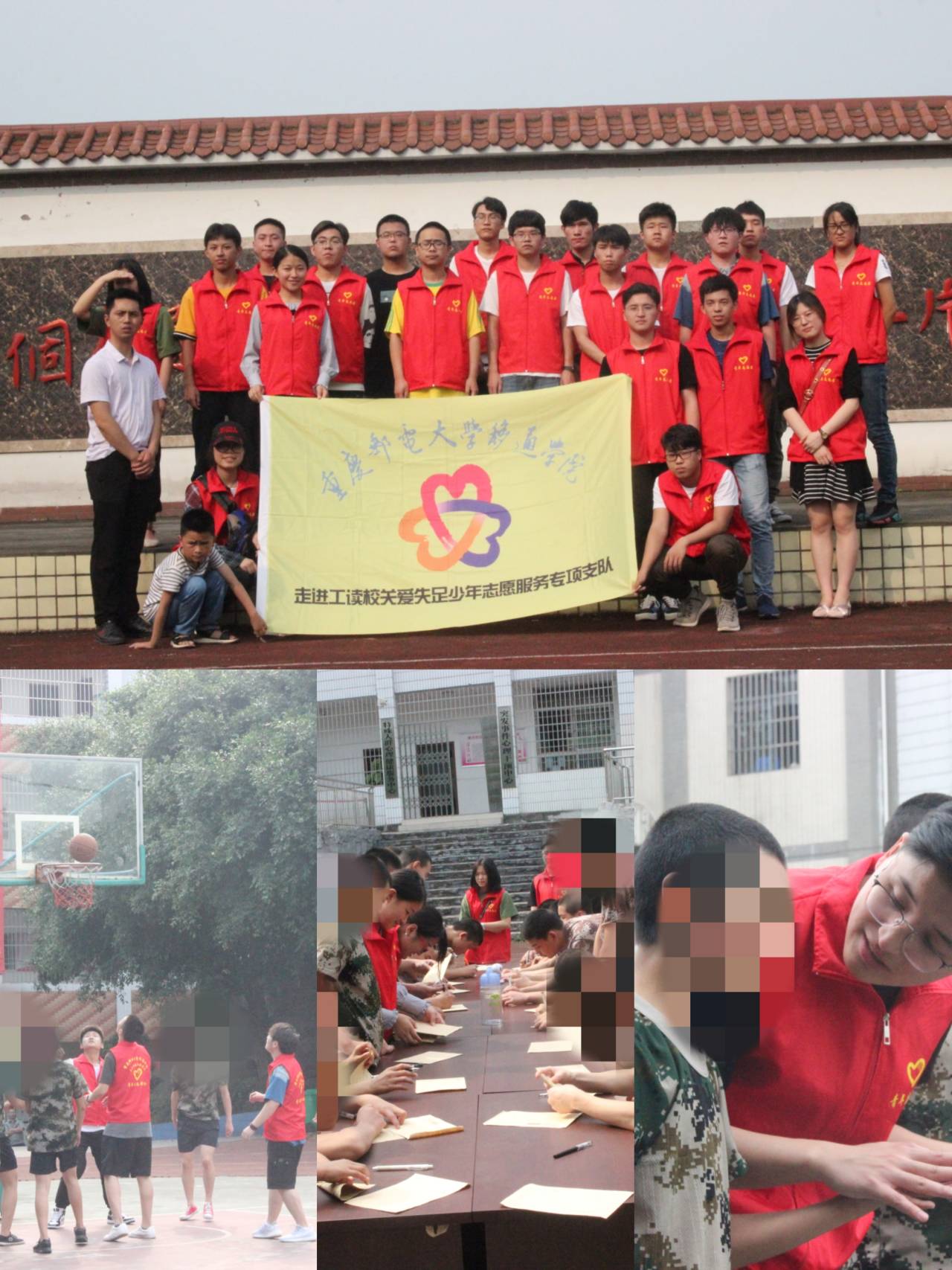 走进工读校关爱失足少年志愿服务专项支队是大数据与软件学院青年志愿者协会所属支队之一,成立于2015年9月,以每月一次的月度特色主题活动形式开展志愿服务活动,由合川爱心志愿者协会,大数据与软件学院青年志愿者协会为辅。主要负责问题青少年的培养,以多样的互动方式消除他们自身的心理障碍,与社会人士共同关心青少年的心理教育,积极创造健康社会环境,并建立学生—家长—学校三方联系,更好的帮助问题少年成功融入社会。