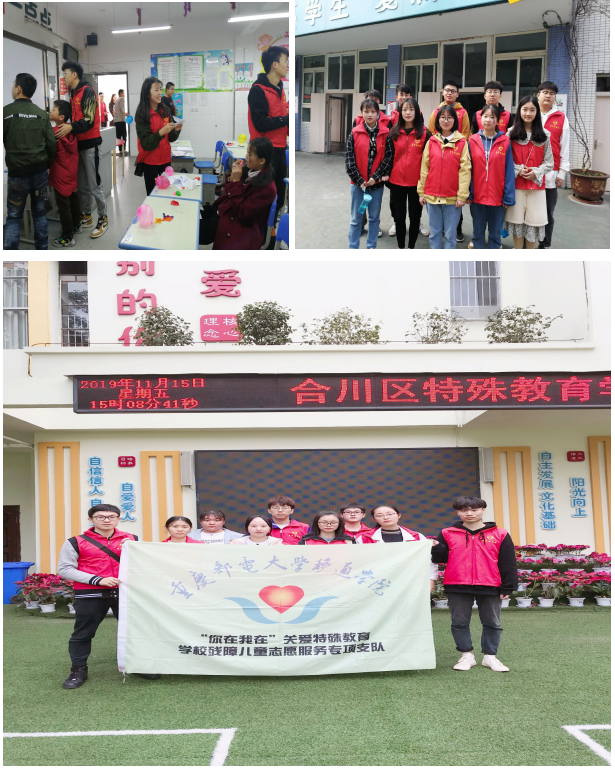 “心语娃娃”特殊教育志愿服务专项支队成立于2013年9月,在每周三的16:00-18:00这段时间内,由我校志愿者前往合川特殊教育学校对学员进行课业辅导以及兴趣培养,开展羽毛球、乒乓球、跳绳、下棋、画画等活动,培养小朋友的兴趣爱好,丰富小朋友的课余生活。活动开展前多次进行专业培训以保障和小朋友们基本交流,践行志愿者关爱社会弱势群体,服务于社会,奉献于社会的宗旨精神。
