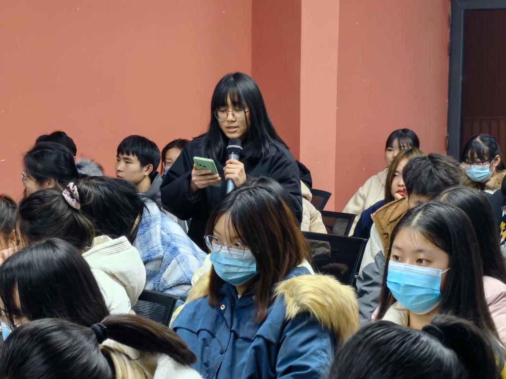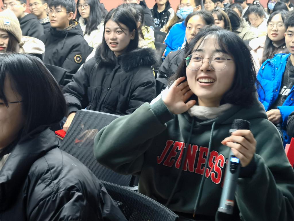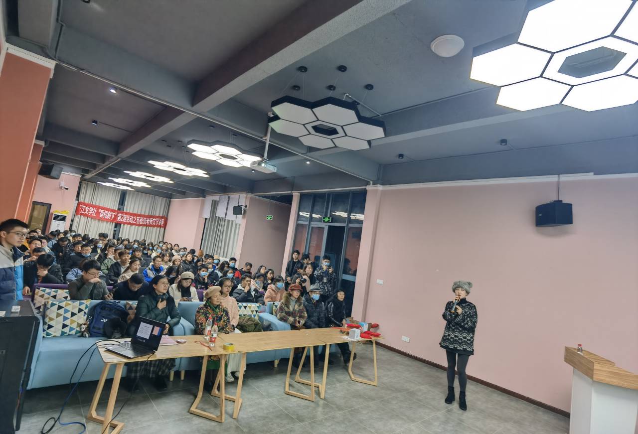 苏老师的文学讲座与其他老师不同,她并不是全程一个人主讲,下面的观众全程倾听。她是一个不按常理出牌的主讲嘉宾,讲座采用“互动-共享-启发”模式,以在场学生为主体,提出问题,苏老师给予解答与回应,再抛回问题,引导同学们进一步深入思考。这种别开生面的讲座形式我们还是头一次见,从头至尾被苏老师睿智的谈吐和巨大艺术魅力影响着和启发着,仿佛我们只是一群朋友,沿着涪江河岸共同走了一道。这次交流于我们来说收获丰厚。