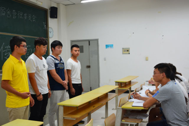 为选拔出人群中的精英,面试是不可少的。此次招新共分三轮面试: 9月9日宿管会组织了初试,此次面试采用“多人一组”的形式,主要选拔标准为口齿清楚、表达流畅、良好的精神风貌和仪态素养,对自己大学生活有简单的规划,并提出相应的问题来考察新生对于所加入部门的态度和想法。前来面试的同学们积极回答各部门负责人的提问,有些同学滔滔不绝,回答有条不紊,展现出了胆量、素质、内涵、才华及语言组织能力。有些同学则稍显稚嫩、紧张,但无论紧张或从容,他们都在努力展现着自己最优秀的一面。