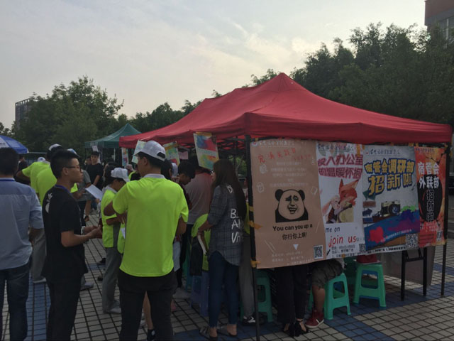 我宿管会作为八大校级组织之一,在足球场主干道旁为2016级新生设置了报名咨询点。新生们在军训之余踊跃咨询,宿管会干部也为新生耐心的解答各种疑问,并根据学弟学妹们的自身情况和喜好推荐适合他们的部门。