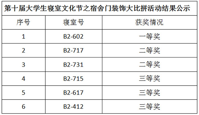 将所有参加活动的寝室门装扮好后的照片小心收集齐后,由11评委共同评选出获奖门牌,并进行了公开展示和颁奖。