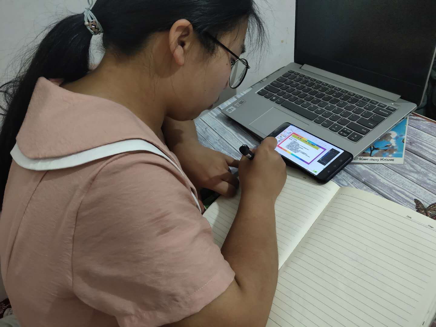 在钉钉线上课堂,毕然老师经常用提问的方式进行情景模拟,这让我们常常感到置身于故事的氛围和场景之中,并能设身处地为故事中的人物着想,从人物的角度去体会自身的爱恨情仇,揣摩人物行动的动机和深层原因。这样的学习方式,使故事中原本死的、平面的角色变活了,让我们对故事人物形象的塑造及作者写作安排的奇妙用心更能心领神会。