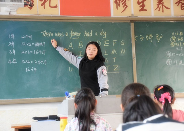 “ABC......”这是在英语兴趣课上,同学们正在和支教老师读着英语,尽管发音不标准,但是他们依旧和老师大声的朗诵着……